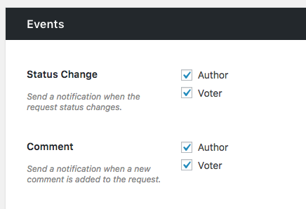 In the Pro version of Simple Feature Requests, you can send notifications when there's a status change, or a new comment is added to a request.